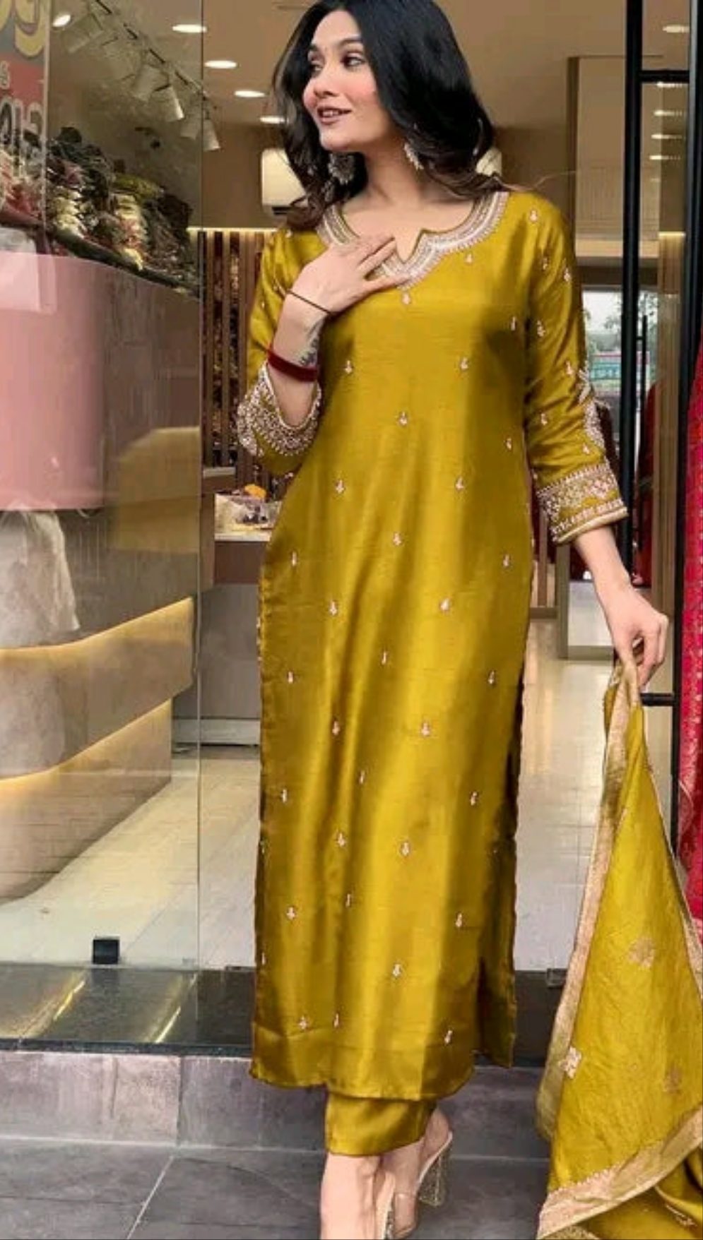 Stylish Party Wear Suit with Jacquard Dupatta