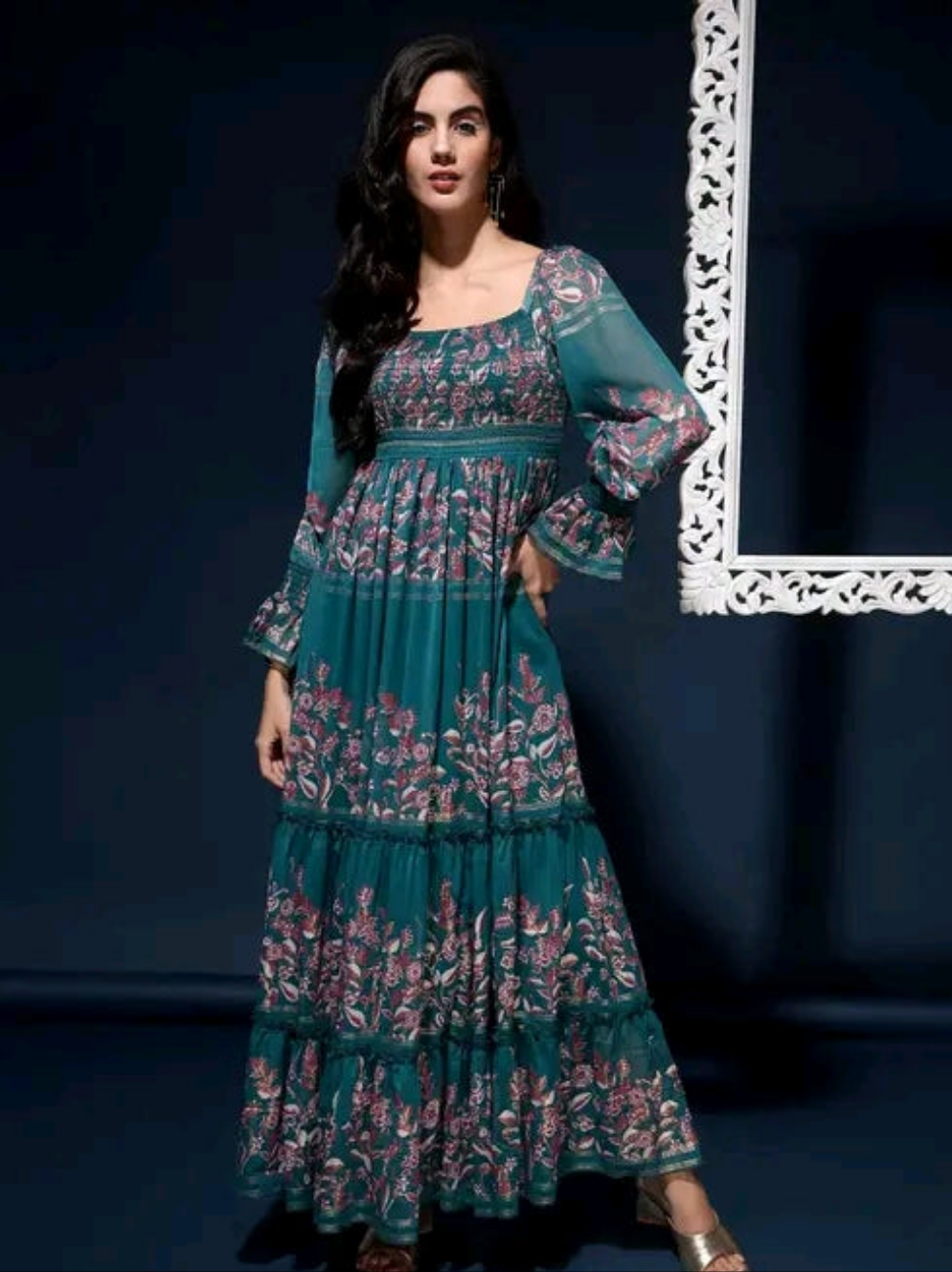 Smocked Tier Square Neck Party Wear